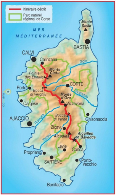 Korsika ligger 17 mil från fastlandet och är en drygt 18 mil lång och 8 mil bred ö, cirka tre gånger så stor som Gotland. Dialekten på Korsika är långsam och lättbegriplig, och de diftonger som annars är allmänt udbrett på Rivieran hörs inte här.